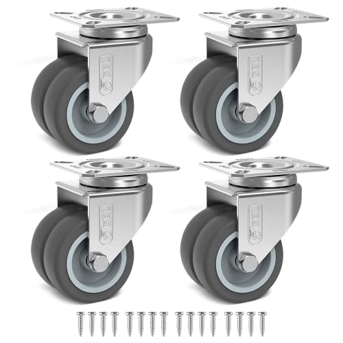 GBL Tunga möbelhjul + skruvar - 50 mm upp till 200 kg - 4 x stora svängbara hjul som inte lämnar tunga märken - för sängbord, bäddmöbler, kanape soffa pallar - silver