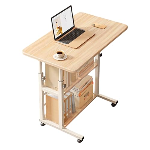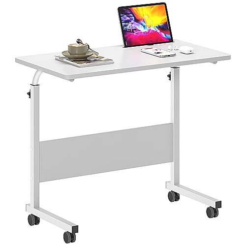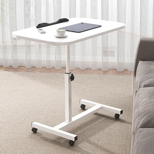 Fetcoi Sidobord, säng, laptopbord, datorbord, justerbar höjd med hjul, inlärning, skrivbord, sängbord, frukostbord, nattduksbord, mobil soffbord (vit)