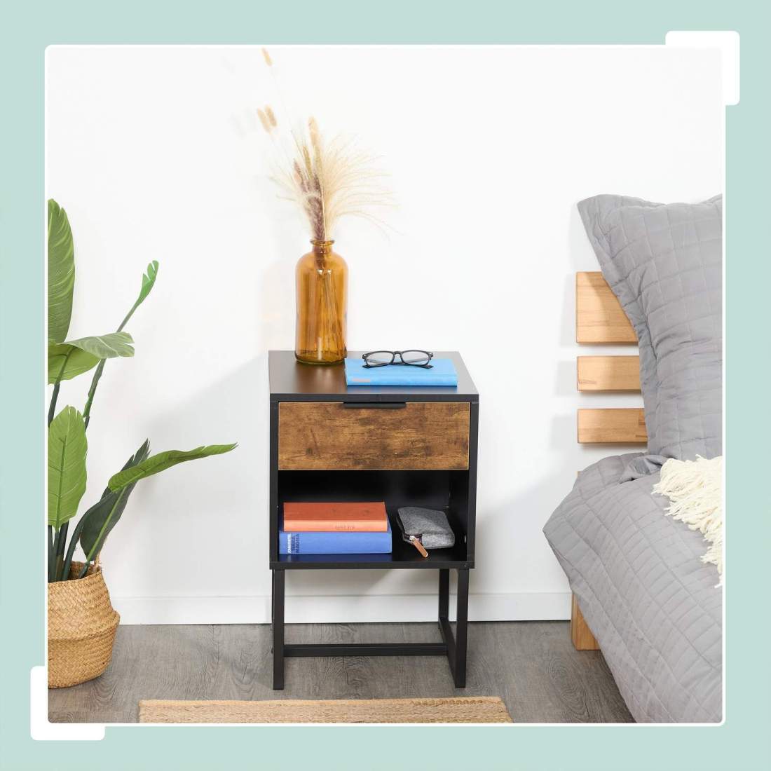 TecTake Sängbord Colchester Industriellt mörkt trä