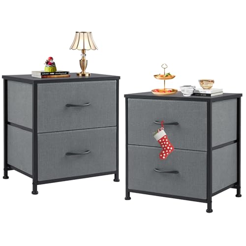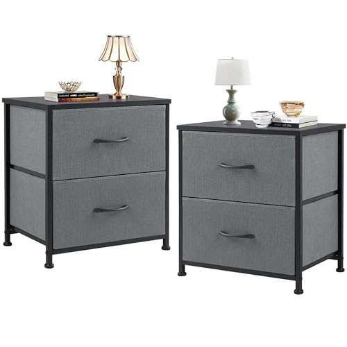 Sweetcrispy Sängbord set om 2, nattduksbord sidobord, tyg lådskåp, smalt skåp, byrå sovrum, industriell stil för vardagsrum, barnrum, hall förvaringsskåp, grå
