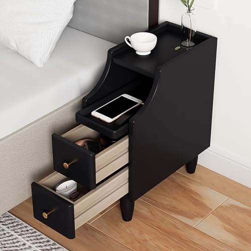 20 Cm Smalt Nattduksbord, Sängbord I Massivt Trä, Sängbord med Förvaringslåda, Litet Nattduksbord (Color : Black)