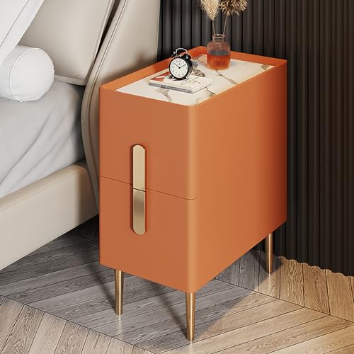 Side end Sängbord Smalt, Förvaring Nattduksbord for Sovrum, Sängskåp Med Lådor, Sidoskåp, Stort Sidobord, Moderna Sovrumsmöbler, Läderfinish (Color : Orange, Size : 25x40x50cm)