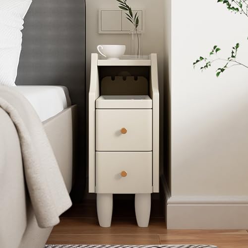 20 Cm Smalt Nattduksbord, Sängbord I Massivt Trä, Sängbord med Förvaringslåda, Litet Nattduksbord (Color : White)