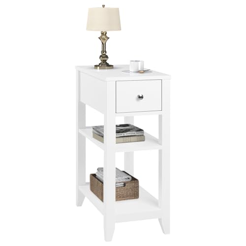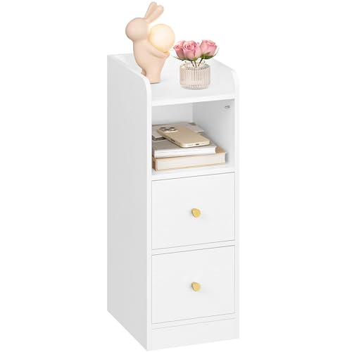ComfortCove Sängbord, Sängskåp med lådor, Nattduksbord, Smalt Sängbord med låda och handtag, Smalt sidobord med förvaringshylla, Vit. Storlek: 20 x 55 x 30,5 cm