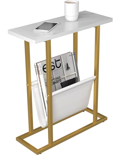 Yusong Litet smalt sidobord för små utrymmen, smalt bord tidningsbord nattduksbord med förvaringshållare, accent smalt mellanmål soffa sängbord, guld (guld)
