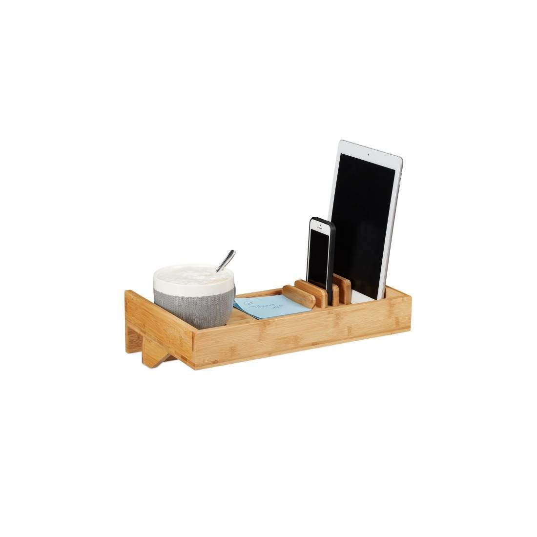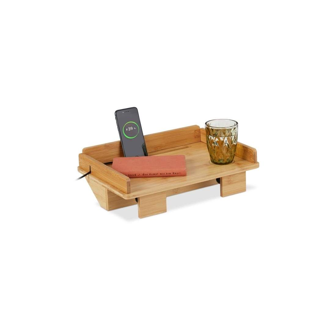 Relaxdays 10012858 sängbricka, bambu, brun, 50 x 30 x 23 cm