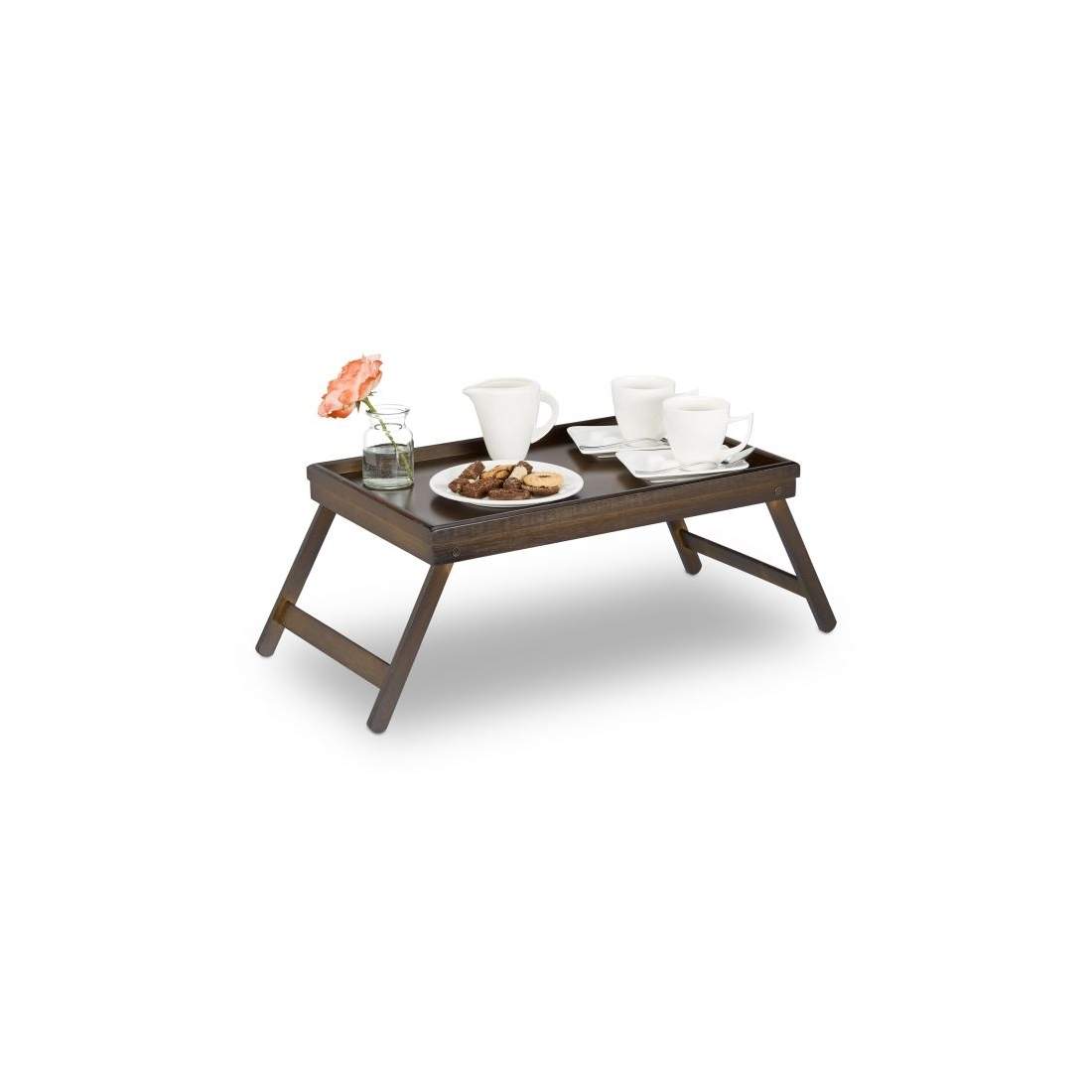 Hopfällbar sängbricka mörkbrun