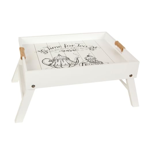Romimex Hopfällbar sängbricka i trä vit 56 x 36 x 24 cm