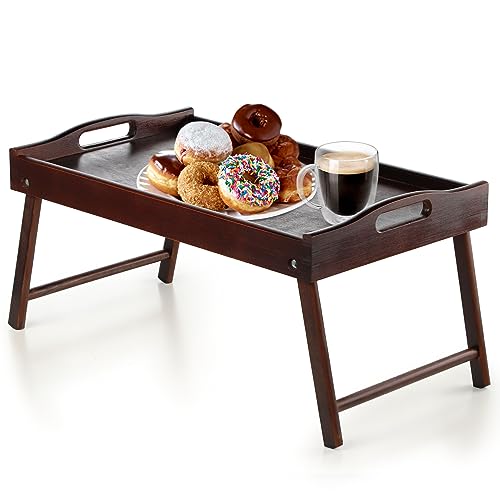 Sängbricka bord vikbara ben med handtag frukostbricka för soffa att äta, rita, tallrikar bambu servering knäbord mellanmål bricka