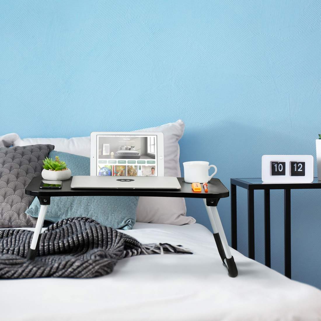 Svart Lapdesk med hållare för surfplattor och drycker – hopfällbar sängbricka