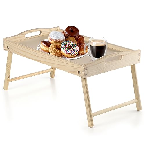 KADAX Sängbord, frukostbricka av furu, 19 x 30 x 50 cm serveringsbricka, vikbar sängbricka, matbricka för frukost i sängen, sidobord (naturligt)