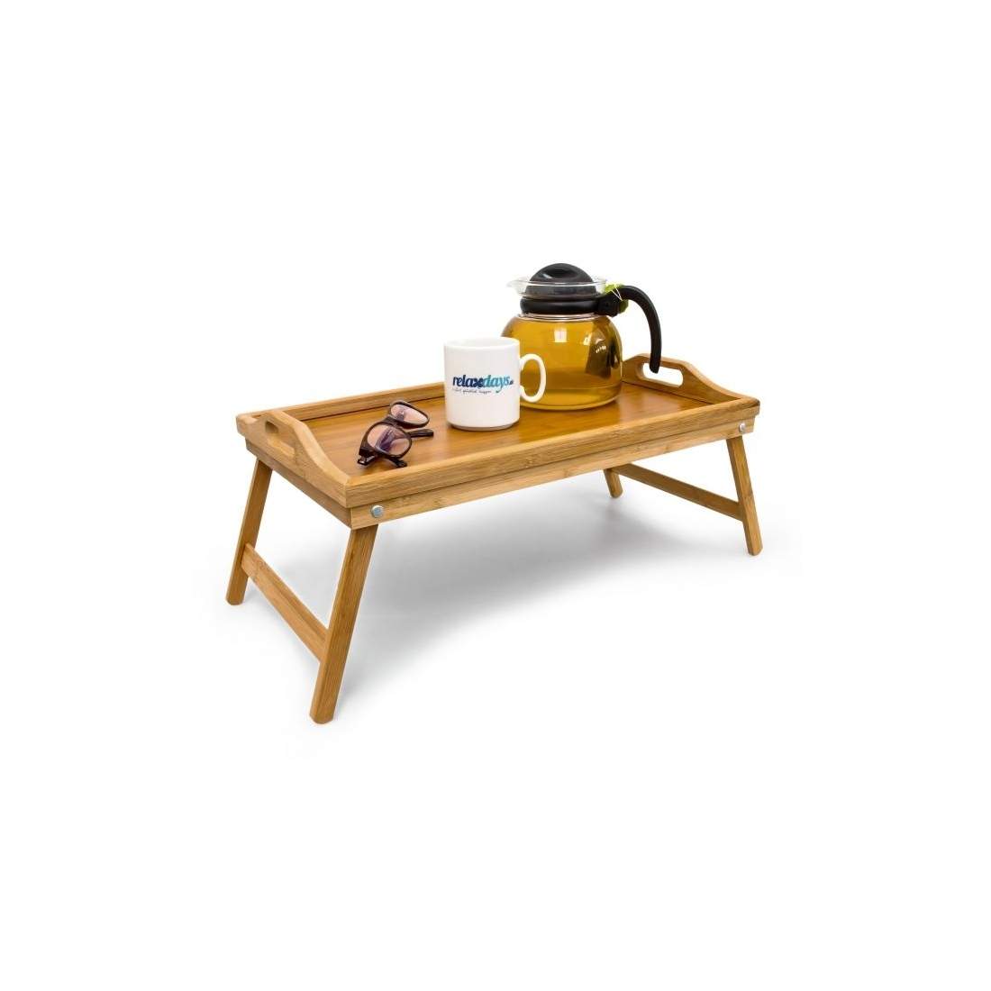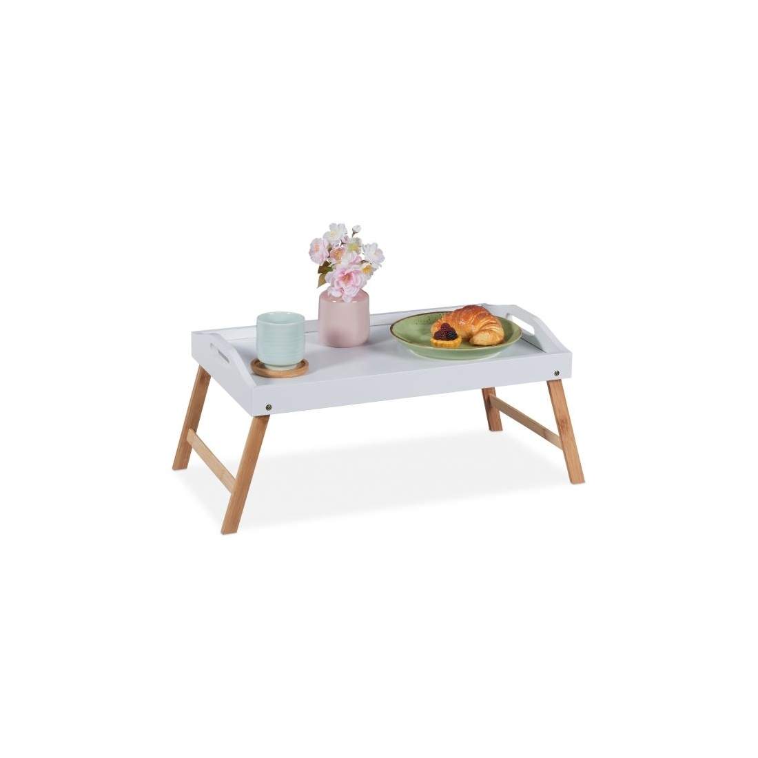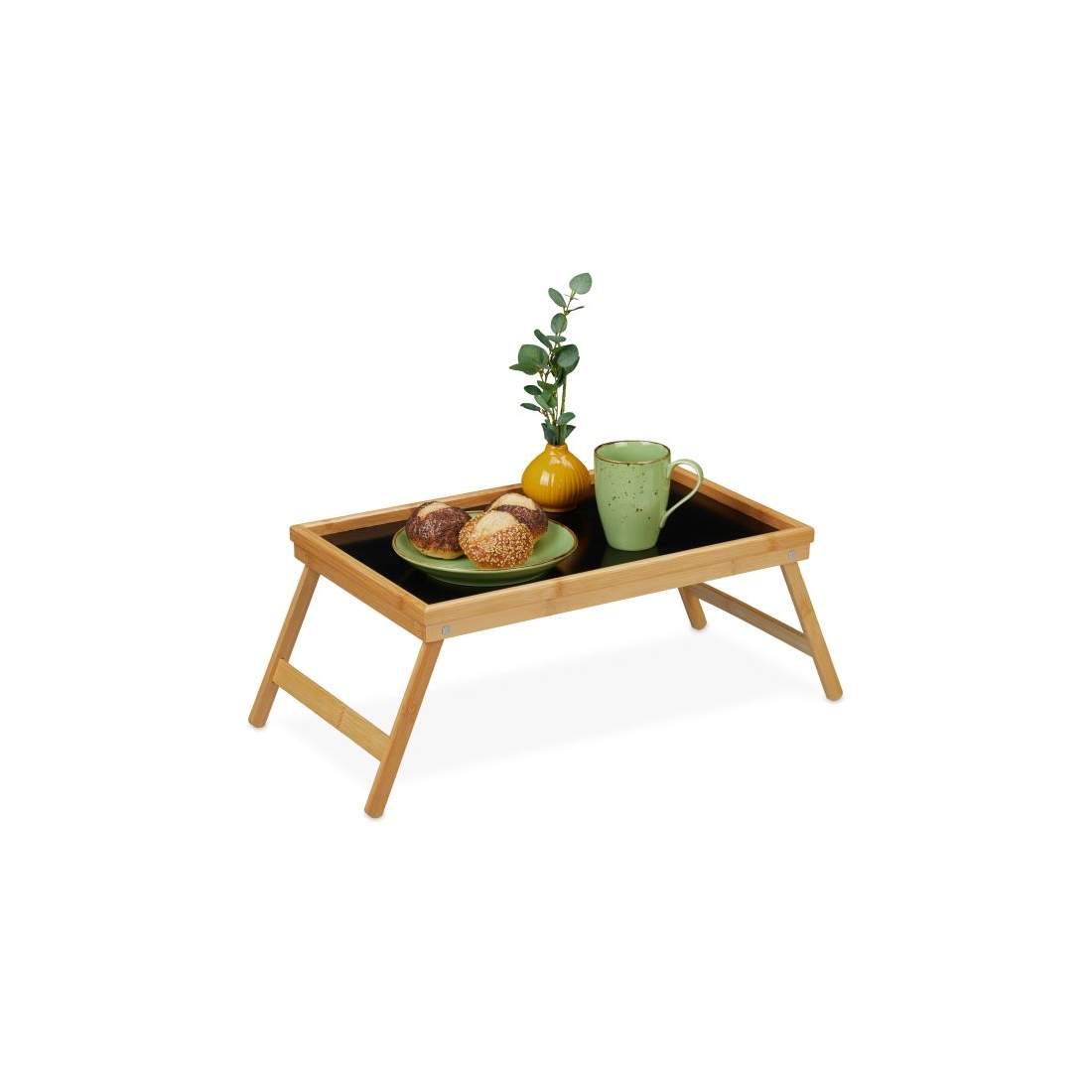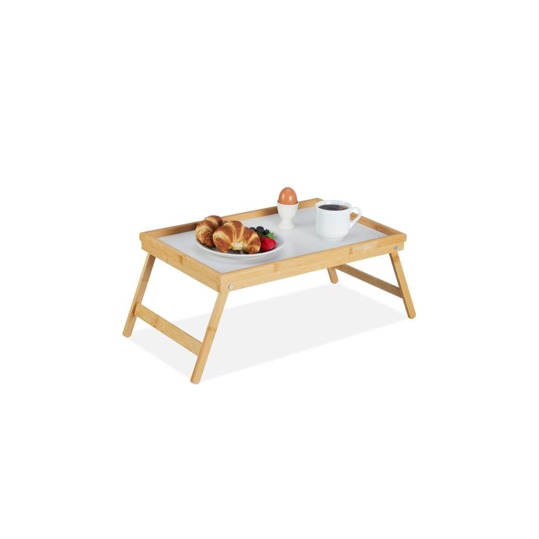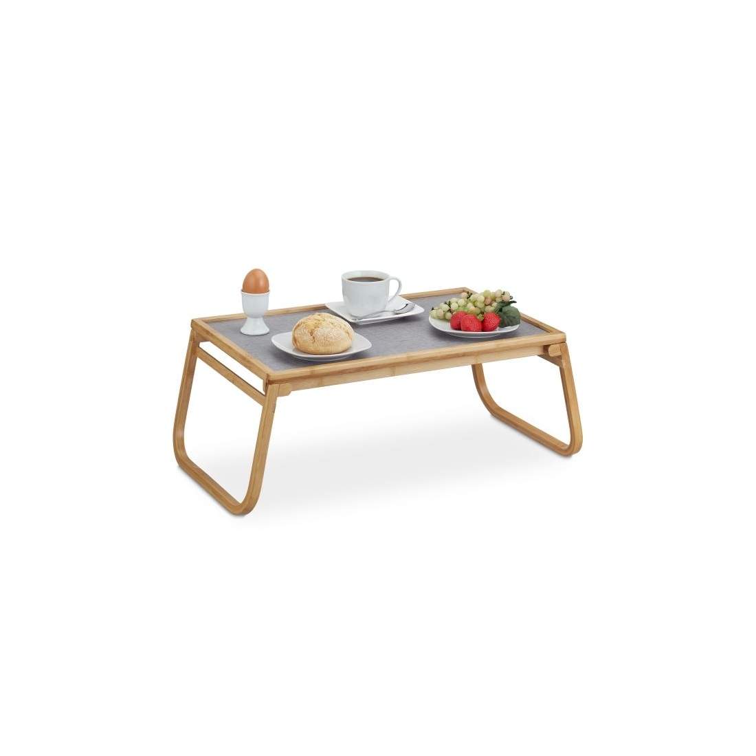 Relaxdays sängbricka i bambu, hopfällbar, serveringsbricka för frukost på sängen, brickbord, sidobord, naturfärgad