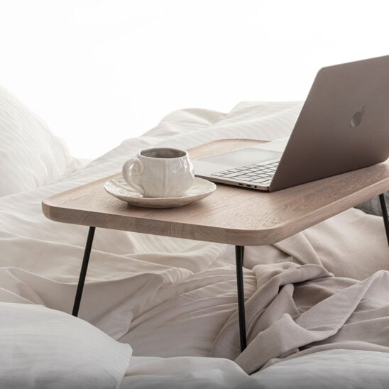 Sängbricka i bambu med surfplattahållare