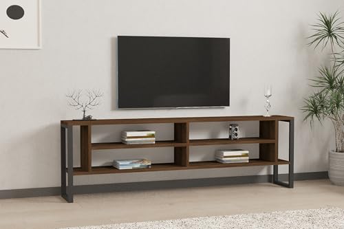 Snygg valnöt TV-stativ, 160 cm bred, 50,4 cm hög, 24,5 cm djup | 100% melaminbelagd partikelbräda, 18 mm tjock | ample hyllor & förvaring för moderna vardagsrum
