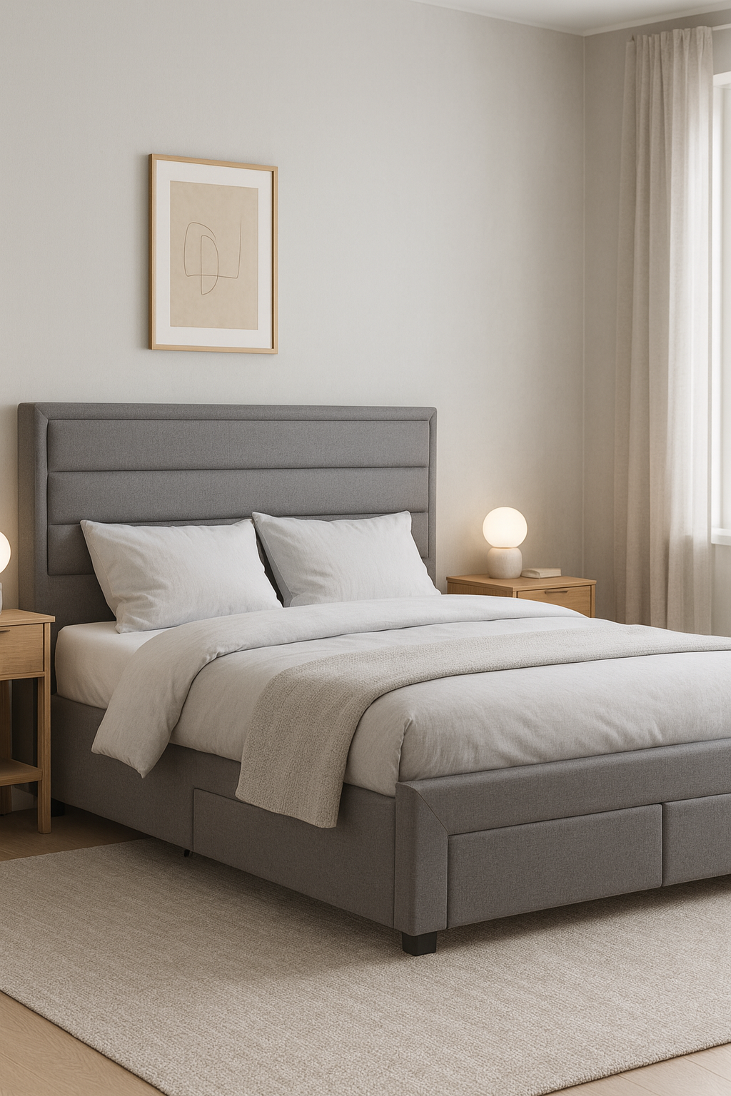 Skånska Möbelhuset Sängram med förvaring inklusive sänggavel 160 x 200 cm grå