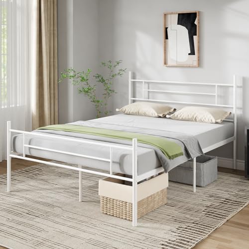 Novilla 30,5 cm metallsängram med sänggavel och fotbräda, stållamellstöd, madrass bas halkfri design, enkel montering, förvaringsutrymme under sängen 160 x 190 cm, vit