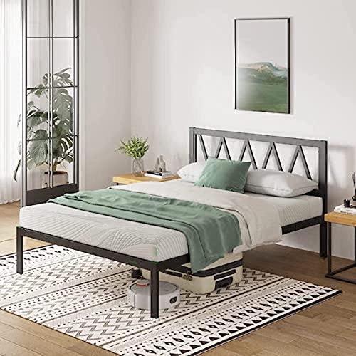 Novilla 30,5 cm metallsängram med sänggavel och fotbräda, stållamellstöd, madrass bas halkfri design, enkel montering, förvaringsutrymme under sängen 140 x 190 cm, svart