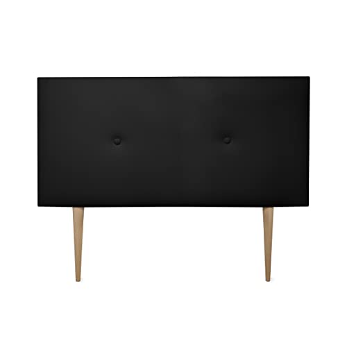 DUÉRMETE ONLINE Premium vadderad sänggavel i milan, med ben, högklassigt konstläder, trä, svart, 90 x 60 cm (säng 80)