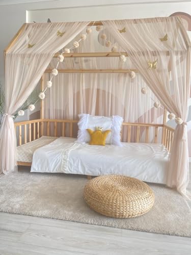 Baby Fancyroom Hussäng, himmel, beige, sänghimmel, dekorationsset, barnrum, barnsäng, baldakin, pom pongirlang av premiumtyll för hussängar himmel 5 x guldfjäril, 340 cm)