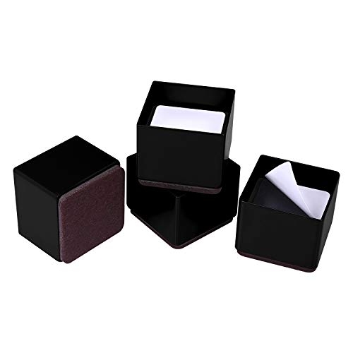 Ezprotekt 5 cm fyrkantiga sänghöjare – stolpe för bäddbord i massivt stål, skyddar trä och mattyta, 3,15 x 3,15 x 2 tum (4-pack, svart)