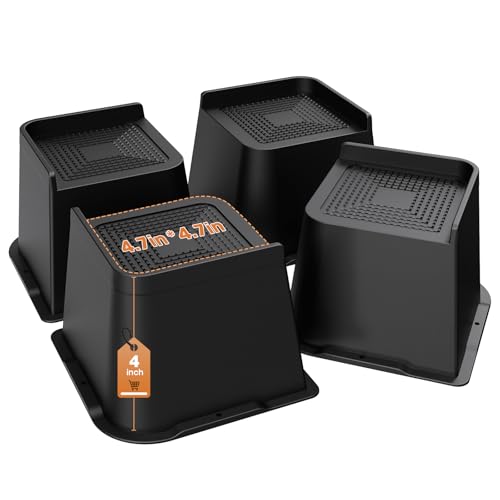 MYMULIKE Sänghöjare 3 tum kraftiga möbelhöjare, upp till 600 pund L formad design sänglyftblock för soffa skrivbord soffa bord bokhylla (svart 4-pack)