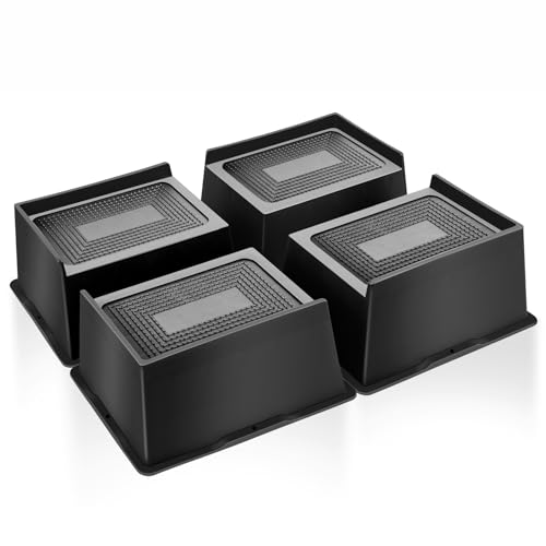 MYMULIKE Sänghöjare 5 cm, 7,6 cm, 10 cm, 15 cm eller 20 cm tunga möbelhöjare, upp till 2720 kg L formad design sänglyftblock för soffbord bokhylla (svart 4-pack, 10 cm)