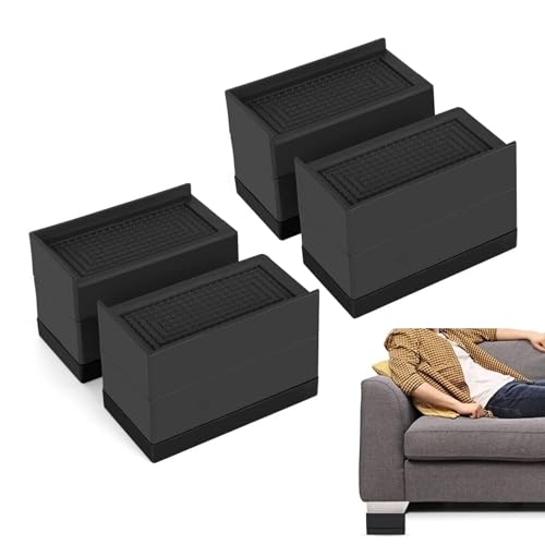 MixDora Sänghöjare 7,6 cm rektangulära möbelhöjare L-form halkskydd soffhöjare för soffor bordsstol 4-pack svart (4-pack, 7 cm)
