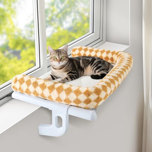 GUUSII HOME Värmesäng katter kattsäng balkong kattsäng för sängkant uppvärmning hängande liggplats hängande säng hängmatta element katt värmebädd katter 61,5 x 38 cm håller 18 kg (brun, L)