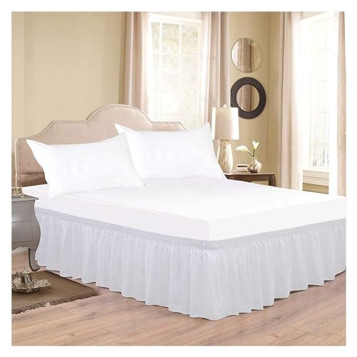 Sängkjol klassisk tjock enfärgad välgjord volanger sängkappa med skrynkel- och blekningsbeständigt tyg och brett elastiskt bälte (färg: Vit, storlek: 160 x 200 x 38 cm)