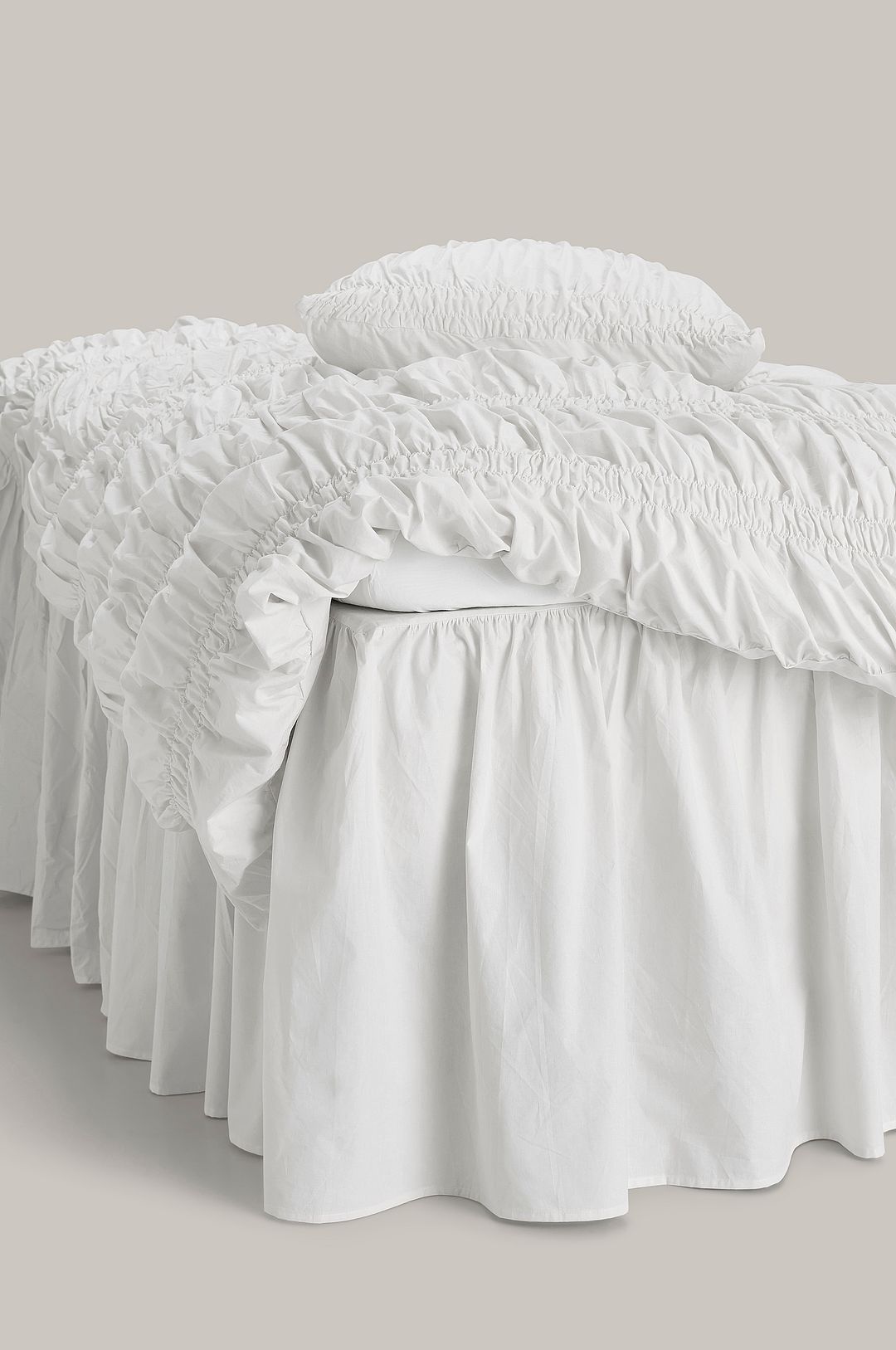 Ellos Home - Sängkappa Elly Frilled i återvunnet halvlinne 52 cm - Vit
