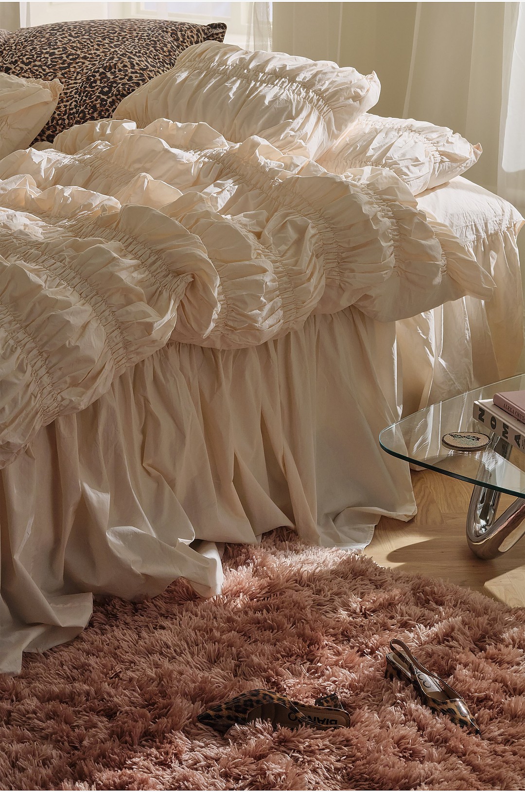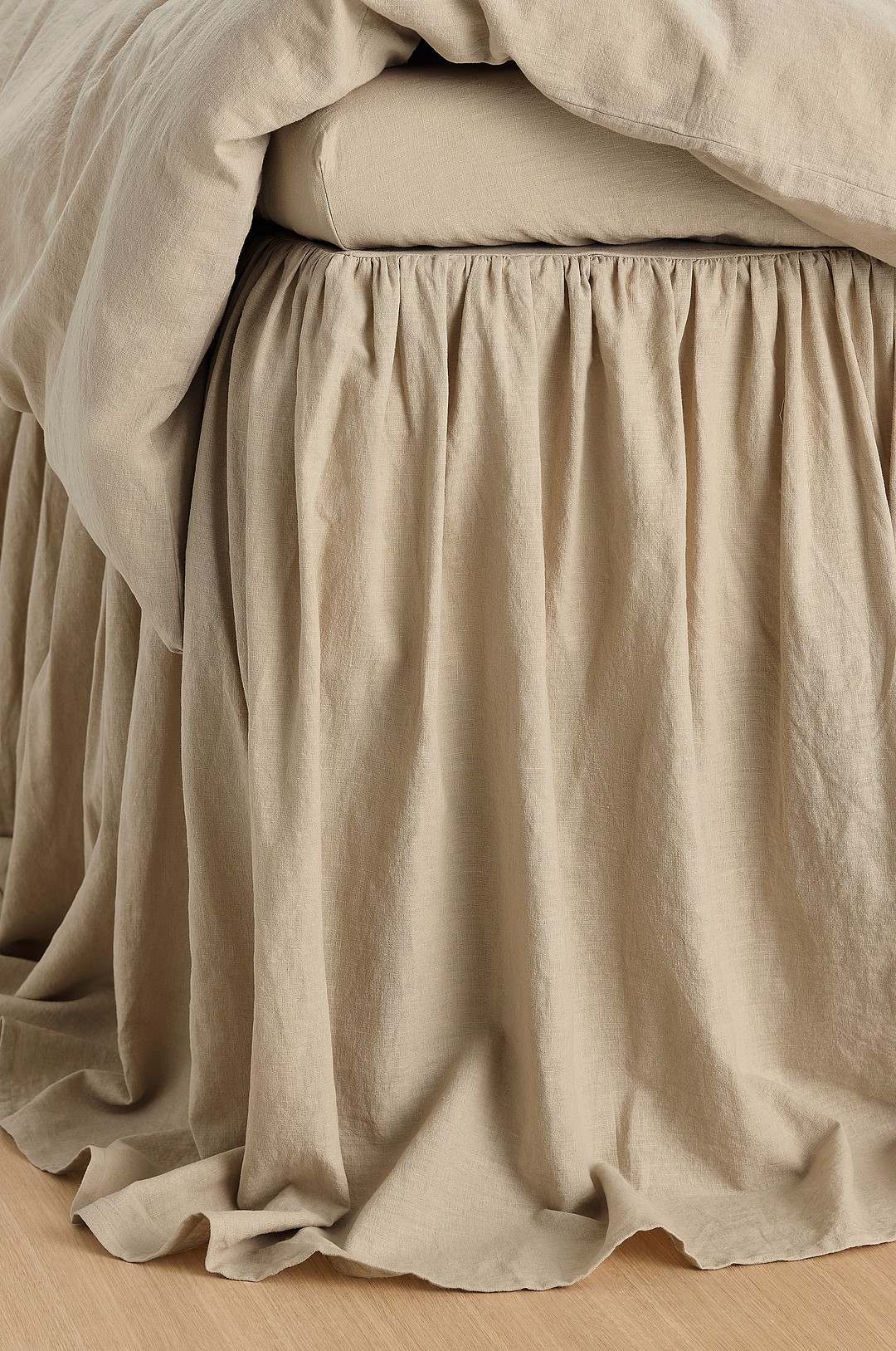 Ellos Home - Sängkappa Elly Frilled i återvunnet halvlinne 75 cm - Beige