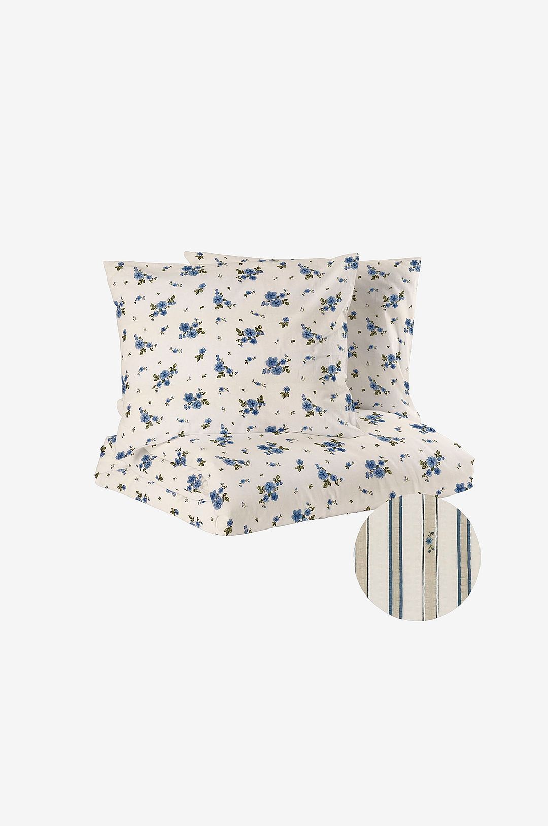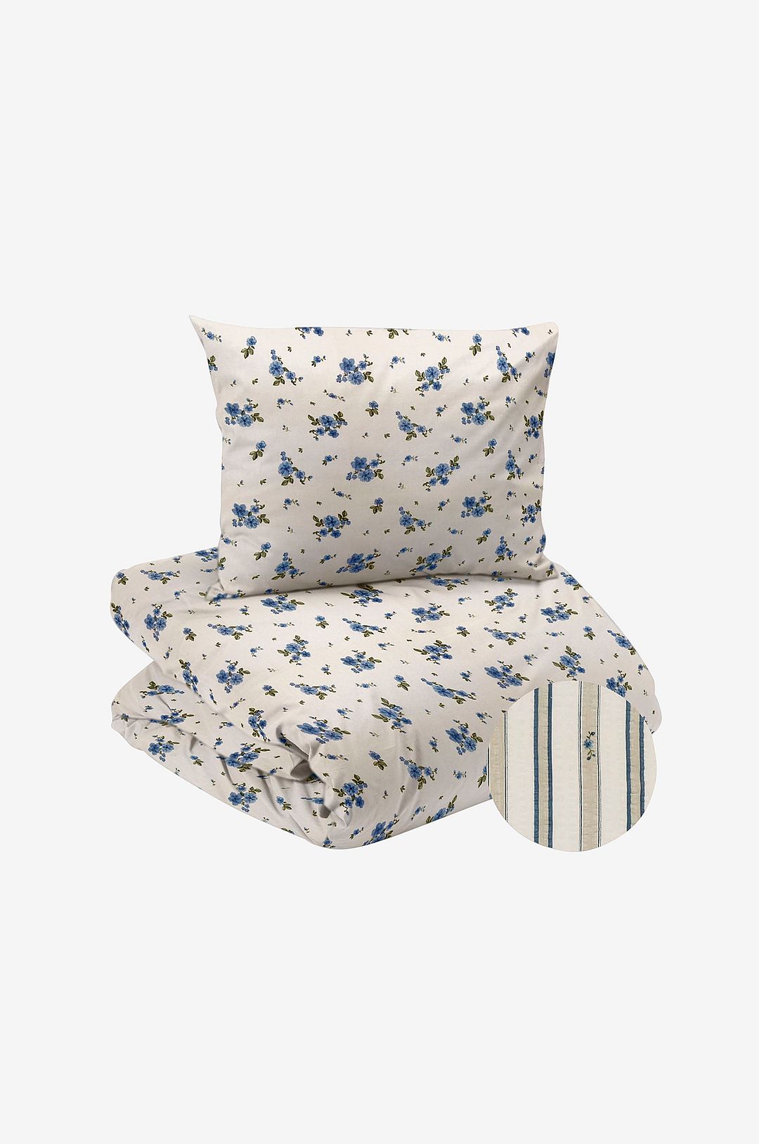 Kosta Linnewäfveri Backa Seersucker Blå Blommor Bäckebölja Bäddset Enkeltäcke 150x210