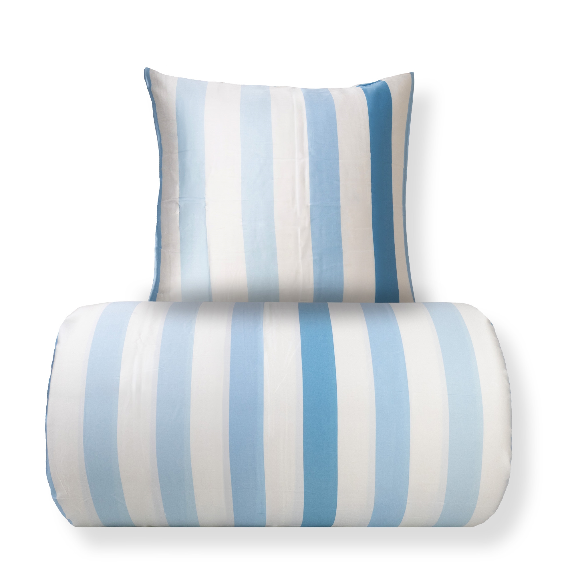 Sängkläder i bambu - 100% naturlig bambu - 140x220 cm - Blå breda ränder - Satinvävt påslakanset