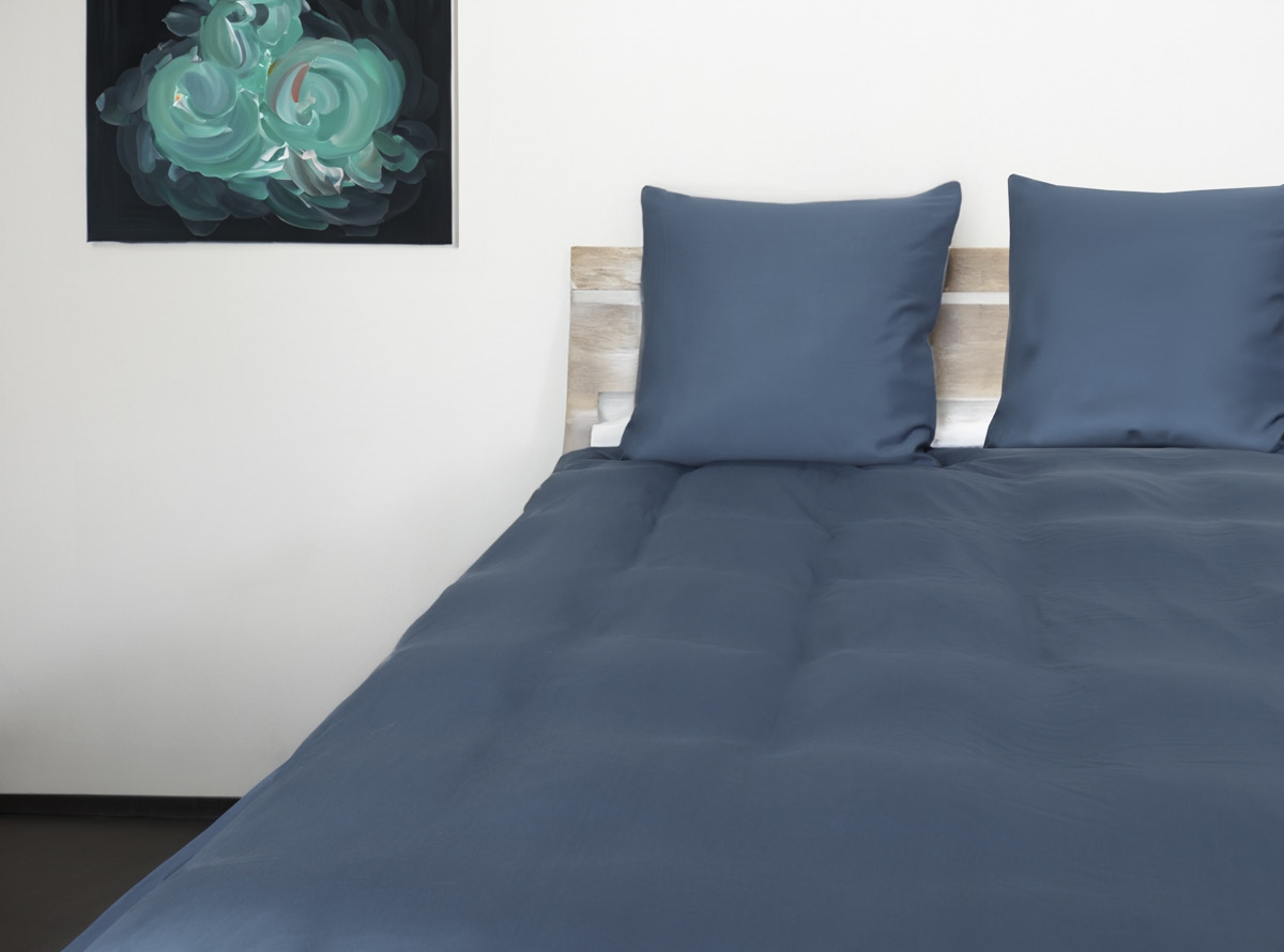 Sängkläder i bambu - 140x220 cm - 100% naturlig bambu - Nature By Borg - Blå satinvävt påslakanset