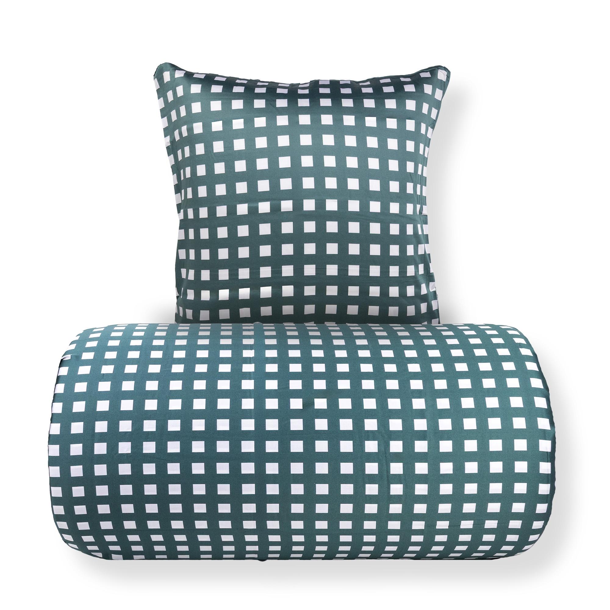 Sängkläder i bambu - 100% naturlig bambu - 140x220 cm - Rutig grön - Satinvävt bäddset