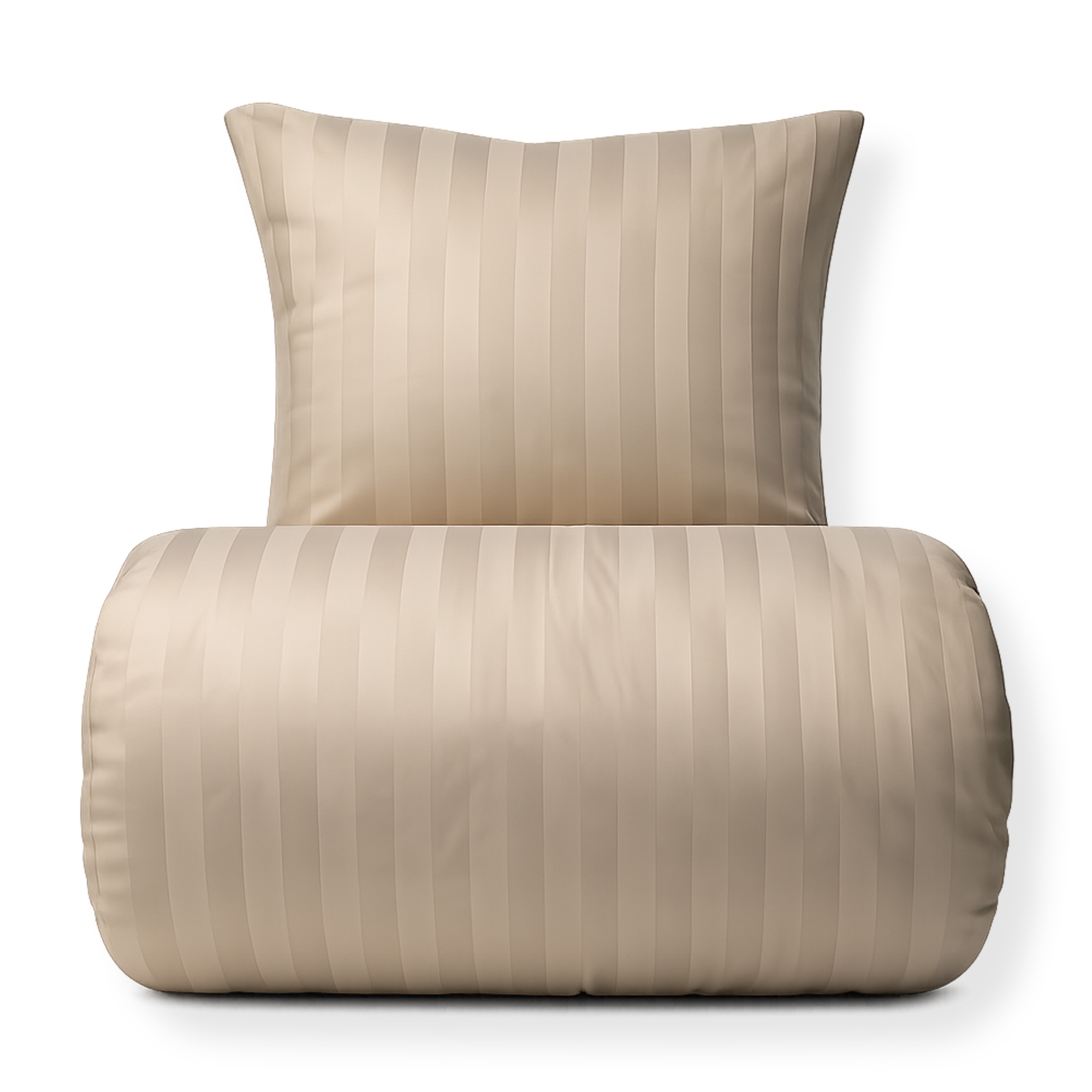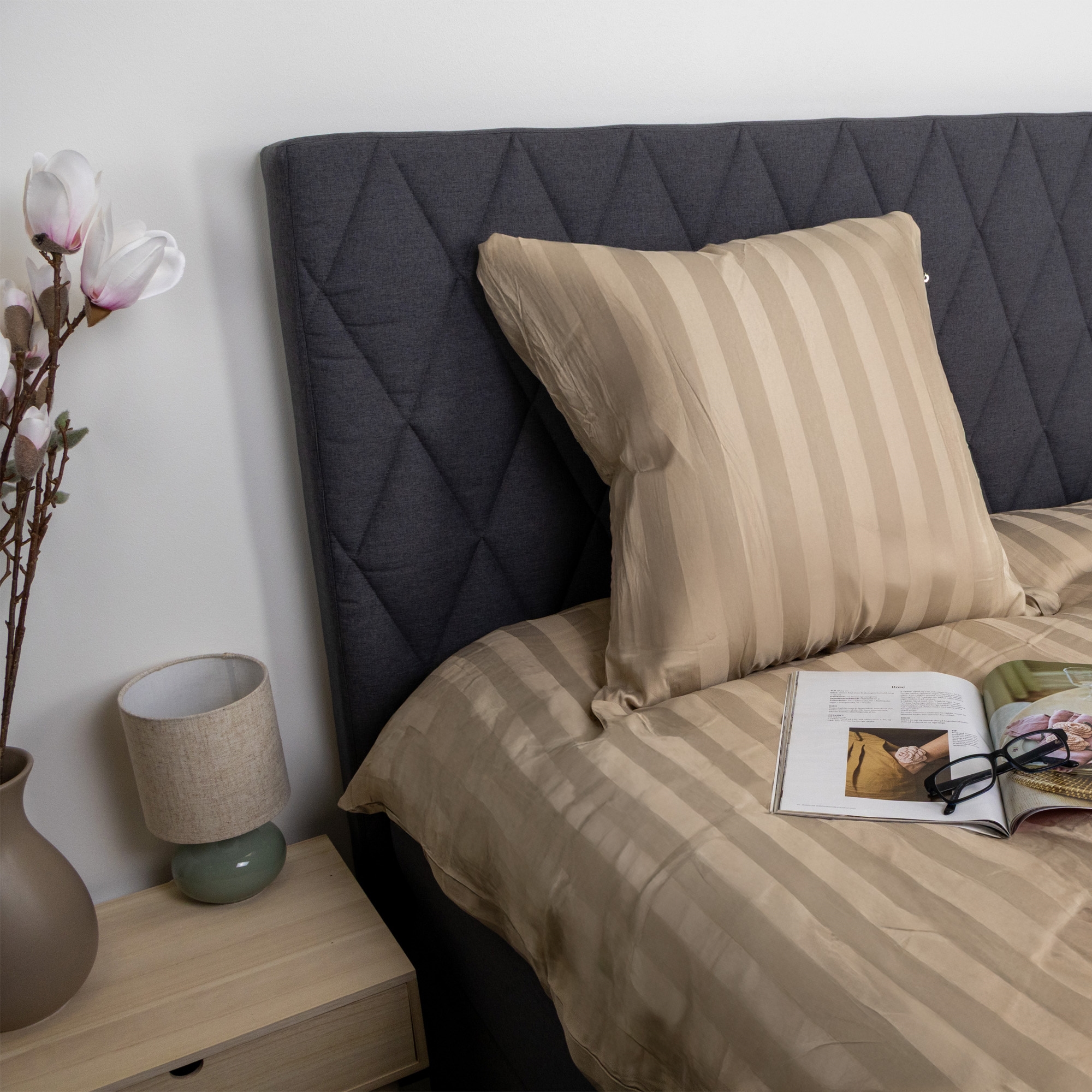 Sängkläder i bambu - 100% naturlig bambu - 140x220 cm - Randig beige - Satinvävt sängset