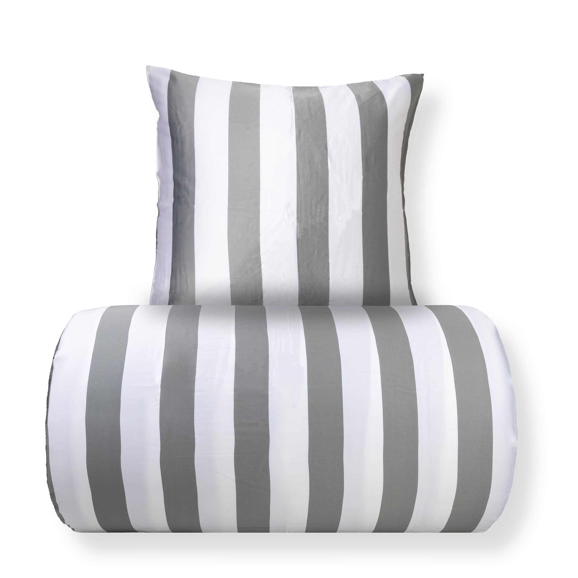 Sängkläder i bambu - 100% naturlig bambu - 140x220 cm - Grå breda ränder - Satinvävt sängset