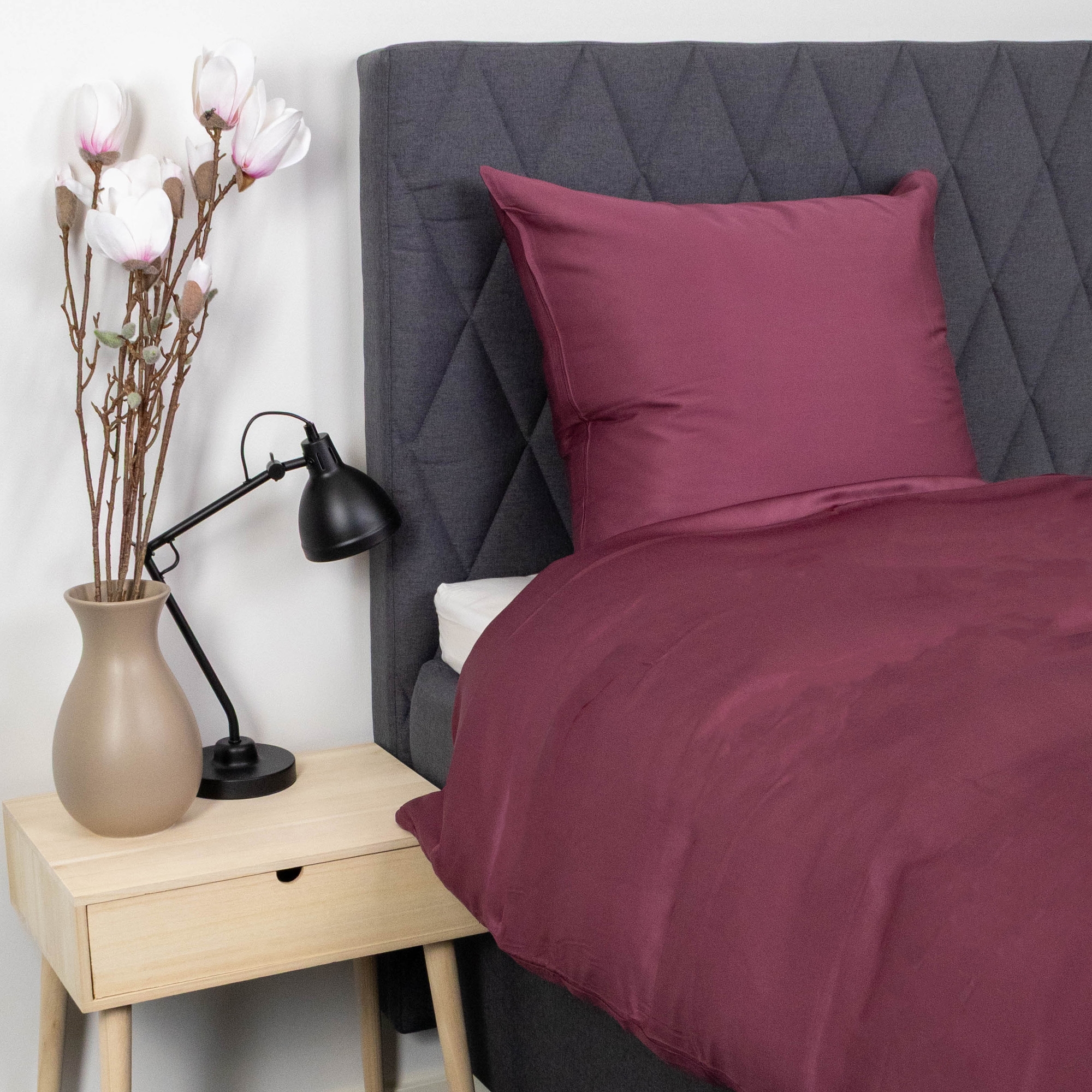Bambaw Påslakan, sängkläder i bambu, allergivänligt, enkelt, påslakanset, organiskt, svalt, dubbelsäng, vinrött, 200 x 200 cm
