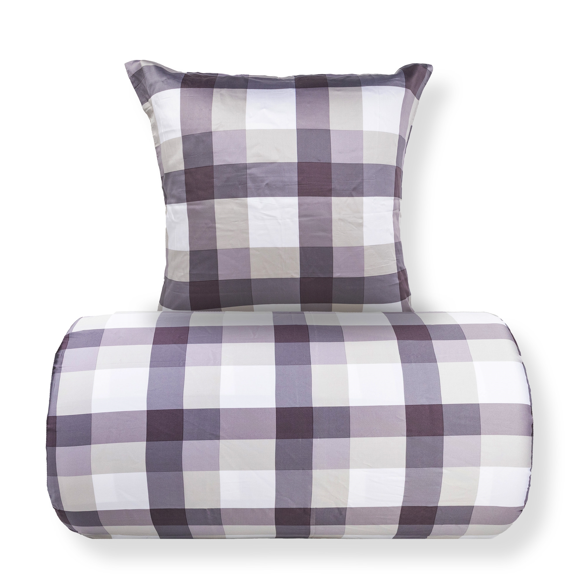 Sängkläder i bambu - 100% naturlig bambu - 140x200 cm - Rutig grå - Satinvävt sängset
