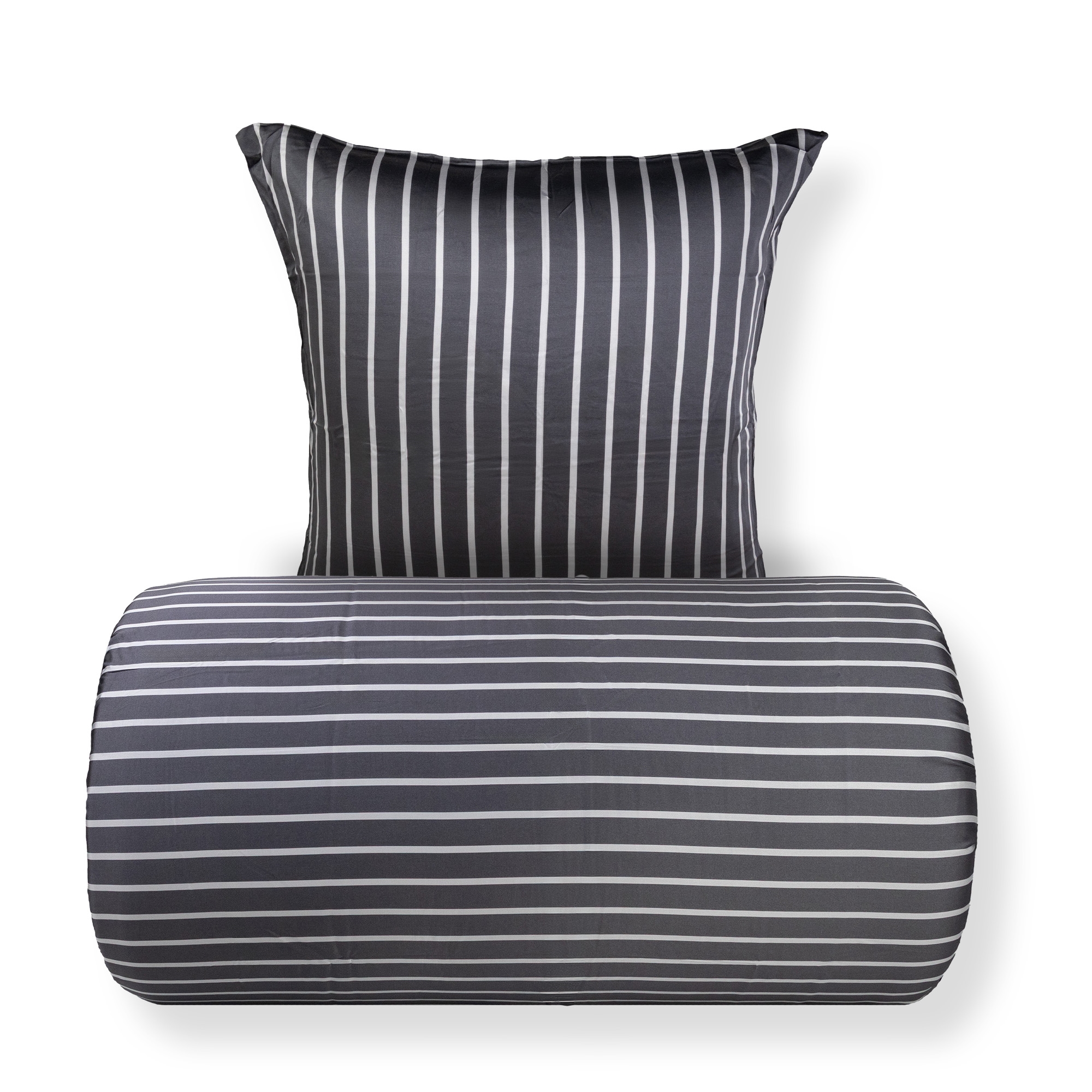 Sängkläder i bambu - 100% naturlig bambu - 140x220 cm - Randig grå - Satinvävt bäddset