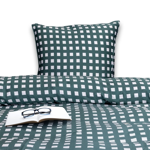 Sängkläder i bambu - 100% naturlig bambu - 140x200 cm - Rutig grön - Satinvävt bäddset