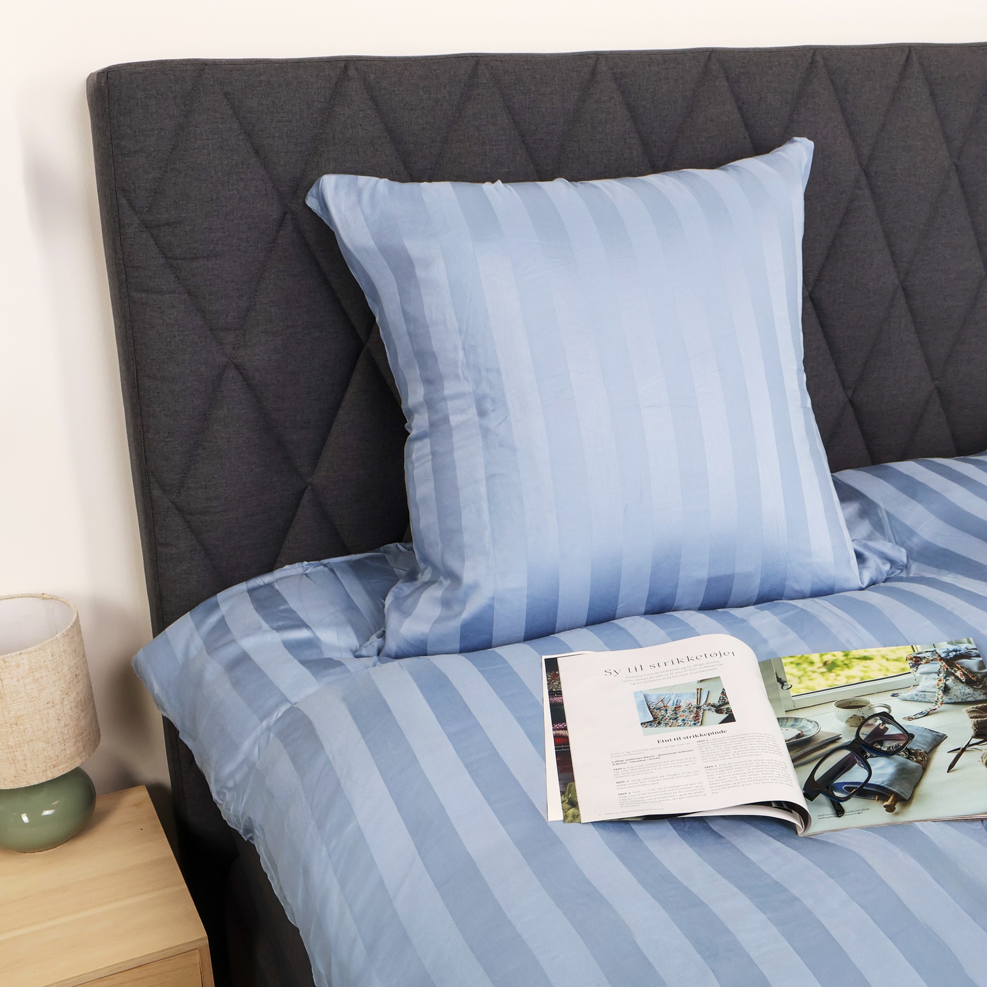 Sängkläder i bambu - 100% naturlig bambu - 140x200 cm - Blå breda ränder - Satinvävt påslakanset