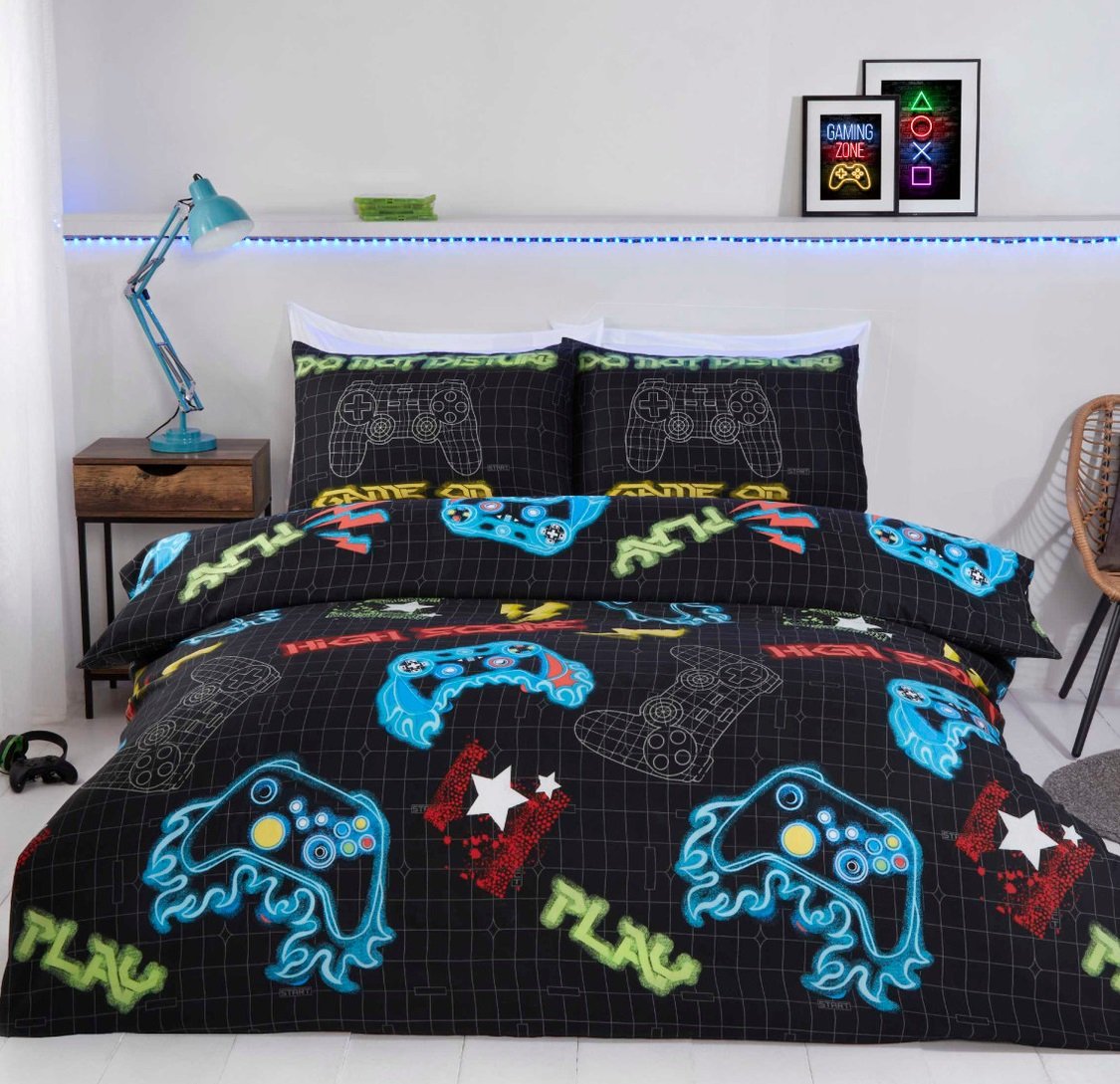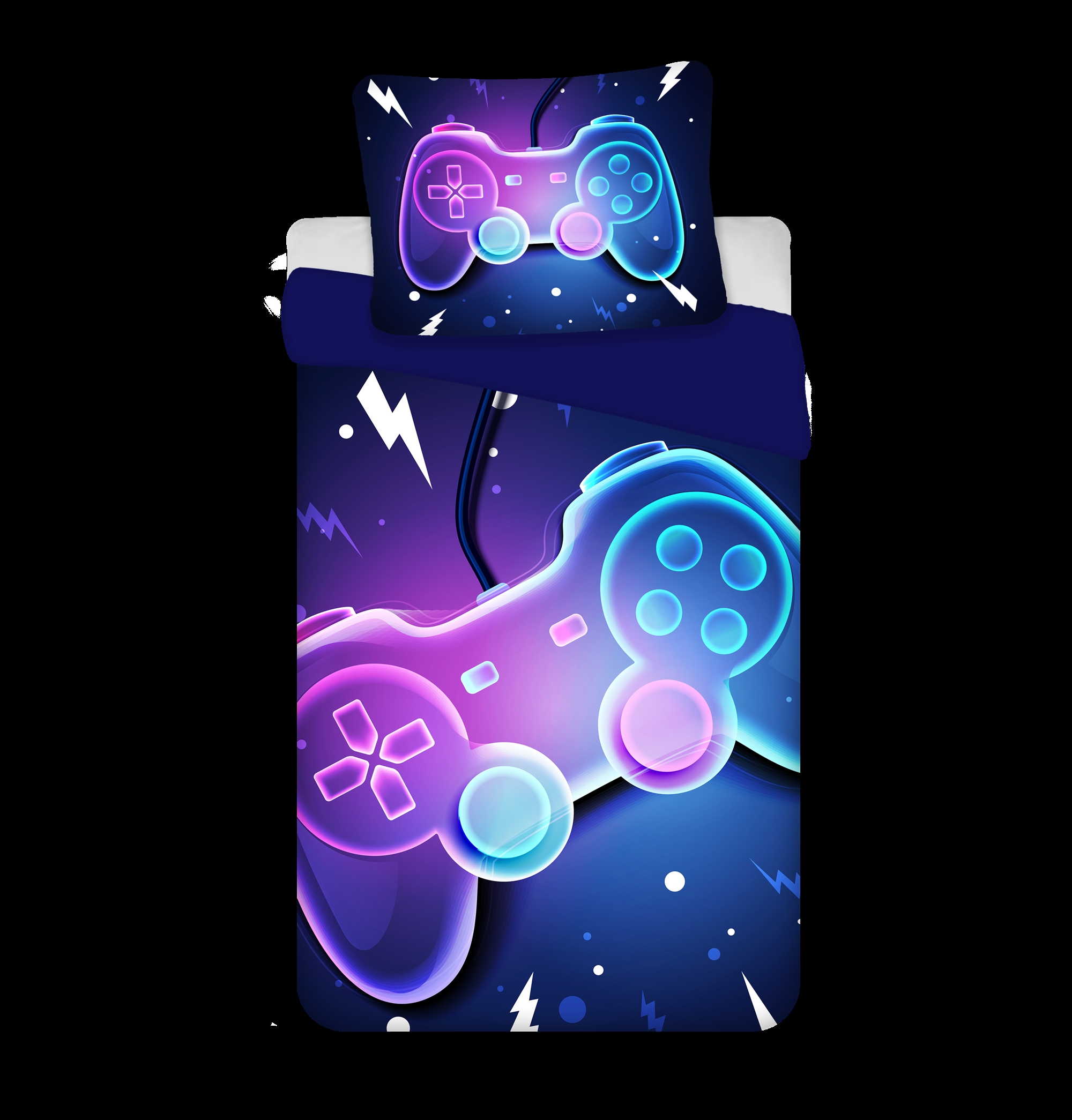 Gamer enkelt påslakan – neon spelkontroller design – vändbart sängklädesset – polycotton