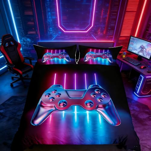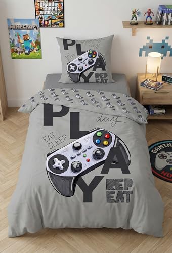 GC GAVENO CAVAILIA Gamer påslakanset enkel, träkol bäddset med örngott, vedio spel påslakan sängset (135 x 200 cm)