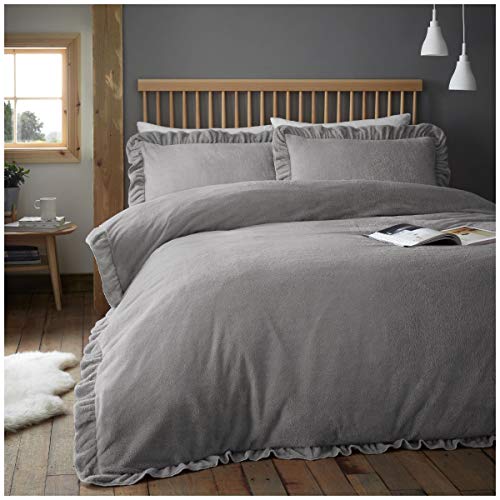 Gaveno Cavailia Supermjuk teddy oco volang sängkläder, fluffigt fleece täcke, mysigt utdunstat täcke set kuddfodral, silver, enkel storlek, 100% polyester