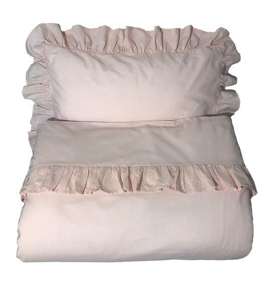 Wylder Nature Tilly påslakanset – 100% tumlad bomull minimal volang sängkläder med elegant trim (rosa – enkel)
