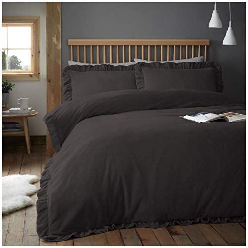 Gaveno Cavailia Supermjuk teddy oco volang sängkläder, fluffigt fleece täcke, mysigt utdunstat täcke set kuddfodral, kol, enkel storlek, 100% polyester