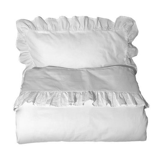 Wylder Nature Tilly påslakanset – 100% tumlad bomull minimal volang sängkläder med elegant trim (vit – dubbel)