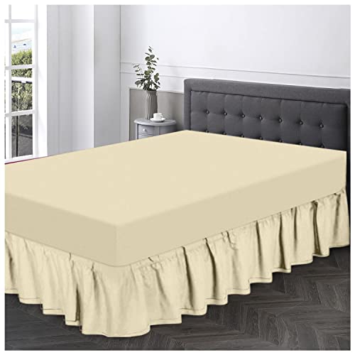 Enkelfärgad kappa dra-på-lakan – polybomull mjuka lakan för king size-säng – volang sängkläder bas wrap kappa kappa – grädde