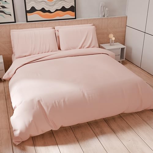 PETTI Artigiani Italiani - Enkeltäcke, Påslakan och örngott i Microfiber, Enfärgad Cipria Claro, 100% tillverkad i Italien